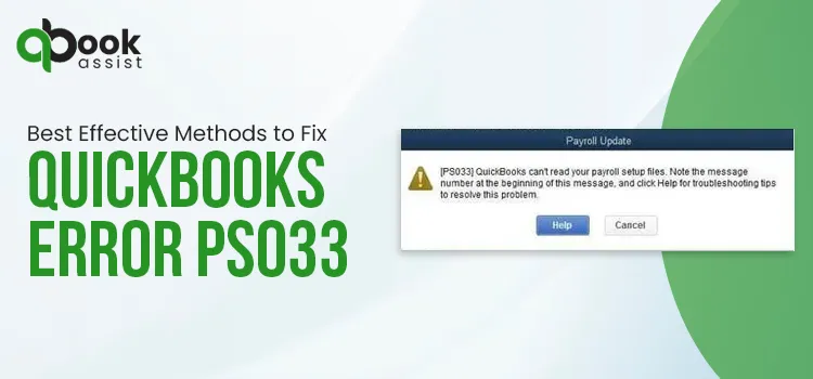 The QuickBooks Error Code PS033 usually appears while downloading the latest payroll updates. It may occur due to damaged or corrupt company files on your system.