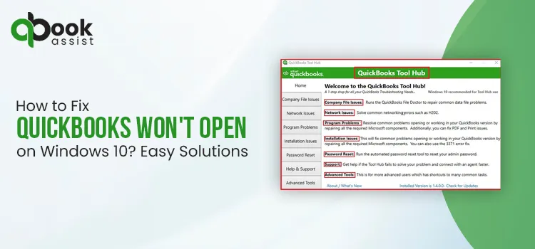 Does your QuickBooks not open on Windows 10 while performing an important business task? It may occur due to the damaged or missing QBWUSER.INI file and corruption in your hard drive. Other factors causing this error include a damaged Windows operating system, a damaged program or QuickBooks Desktop installation, or a large company name. However, it’s essential to get rid of this issue to continue with your ongoing business task smoothly. In this blog, we have explained all the causes and troubleshooting solutions on how to fix QuickBooks that won’t open on Windows 10.